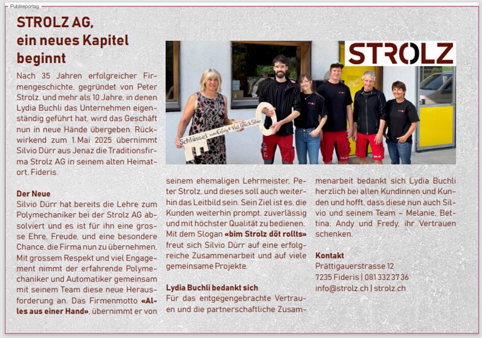 Übernahme des operativen Geschäfts durch die «Strolz Mechanik GmbH» per 01.Mai 2025